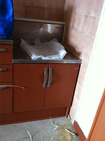 가스렌지를 얹어 놓던 부분의 씽크대를 떼어내고