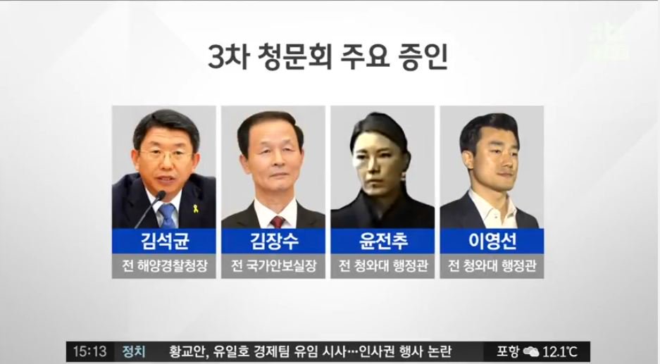 내일 청문회 윤전추 나오네요..