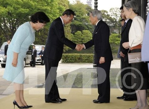 일왕과 악수하며 고개 숙이는 이명박 대통령