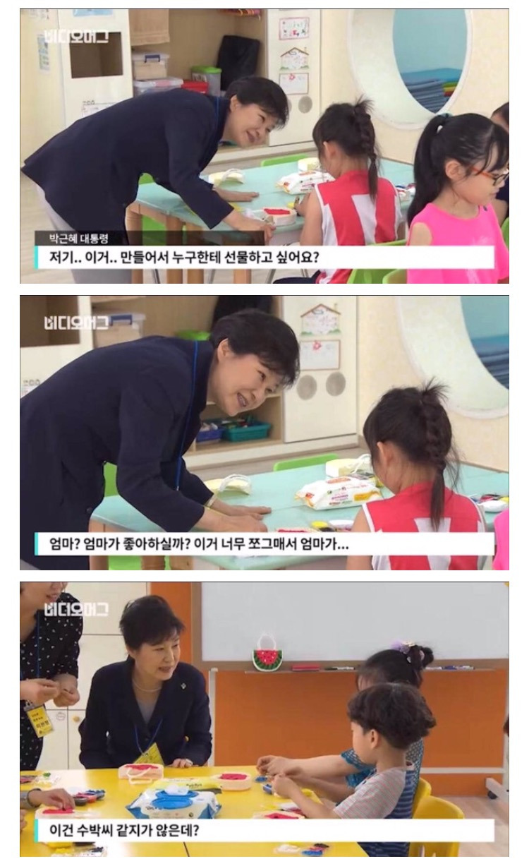 박근혜의 동심파괴 장면인데 이 사진을 보여주며 설명한다면 아이가 이해할까요?