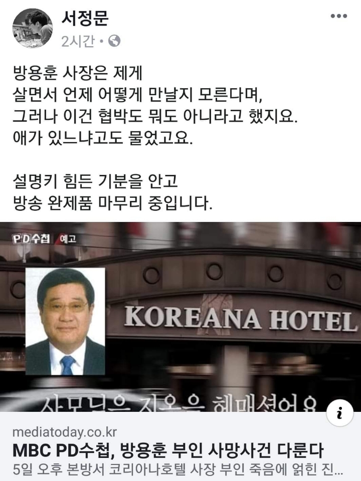 '19.3.6 12:42 AM (223.33.xxx.190)Pd수첩 서정문기자분이