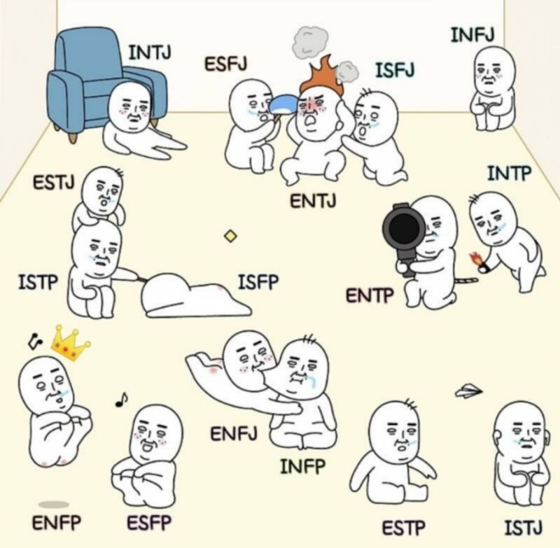 이 그림에서 오른쪽 구석에 쳐박혀 쪼그리고 있는 게 INFJ 인데,