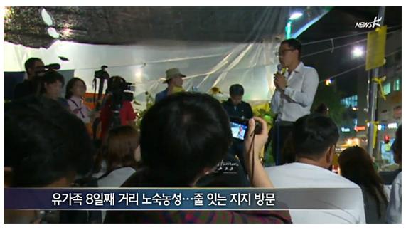 유민아빠 김영오씨 곁을 지키고 있는 대한변협 법률지원단 원재민 ..