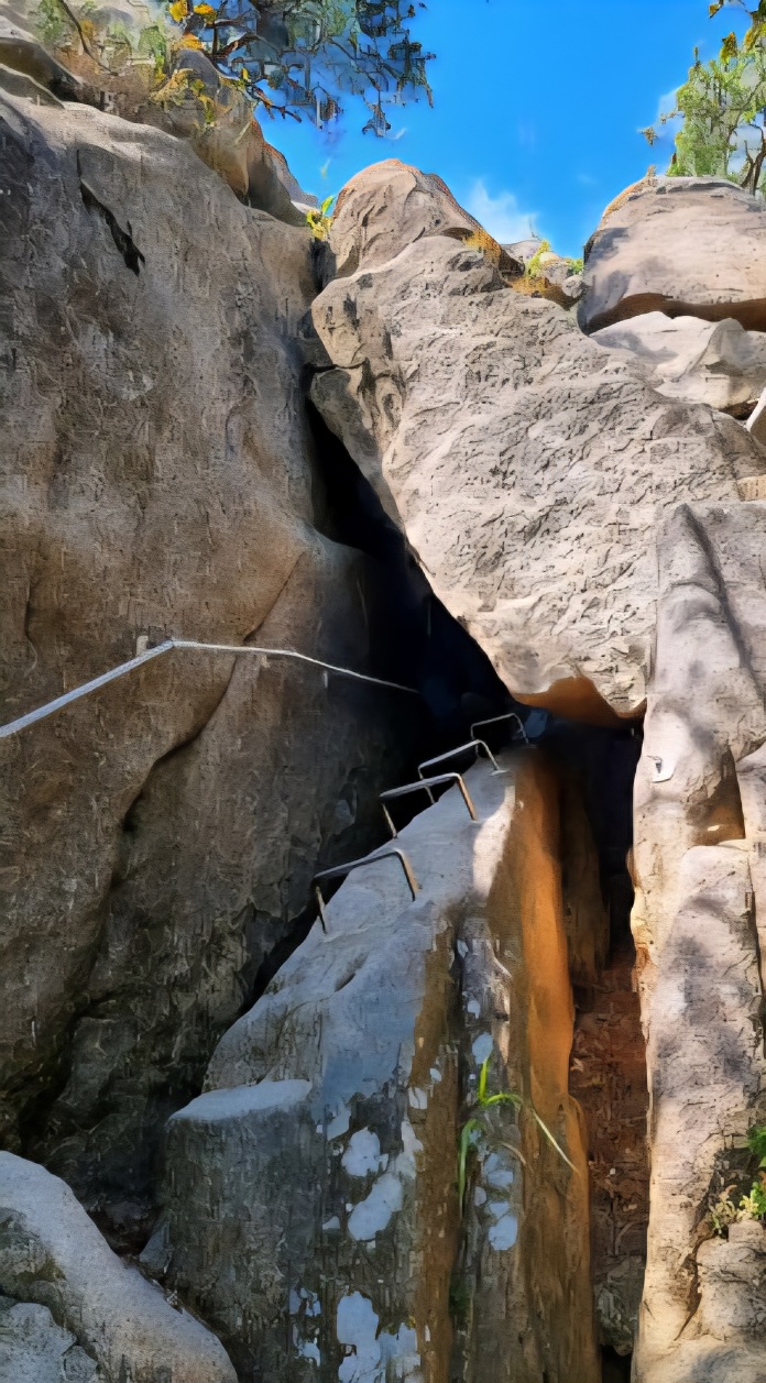 용화산 처럼 오봉산도 숲으로 쌓여 정상 조망은 좋지 않고.용화산 최단코스가 큰고개라면,오봉산 최단코스는 배치고개.40분이면 정상에 오를수 있어요.그래서 100대 명산을 도전하는 사람들은 아래 배치고개에 주차하고 정상 찍고 원점회기.그러나 오봉산의 진수는 청평사로 하산해야 그 맛을 볼수 있죠.악산 진면목은 이 구간에서 펼쳐지기에.