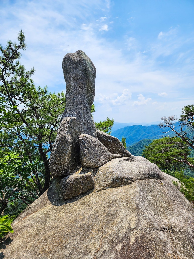 춘천과 화천군의 경계로 높지는 않지만 암릉미가 빼어나 100대 명산.정상석을 눈여겨 보는 습관이 생겼어요.높지도 않은 산에 대리석으로 재단 같이 올렸네요...느낌이 1도 없다는 얘기.