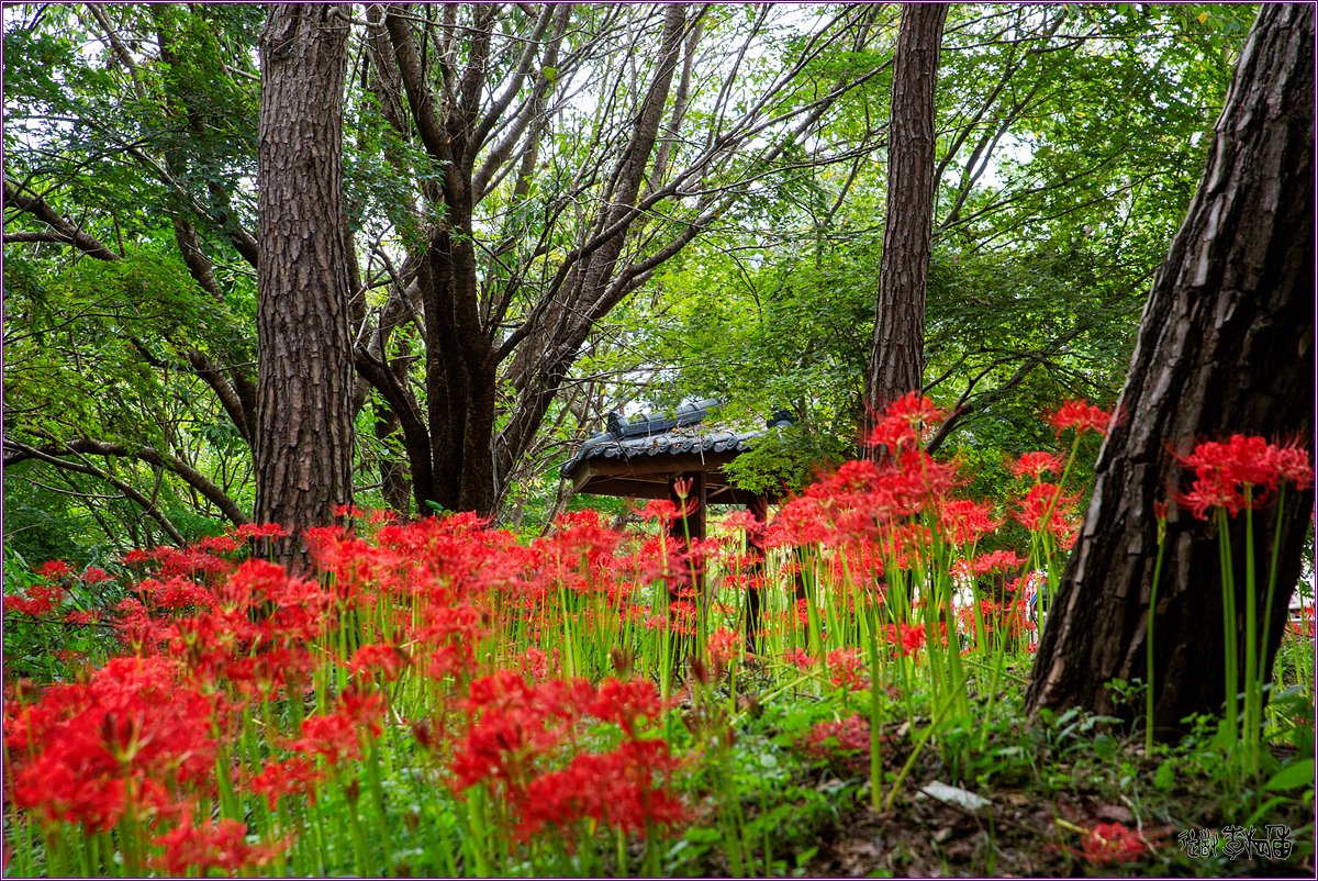 꽃 무릇이 눈 앞에 펼쳐지는 찻집에서