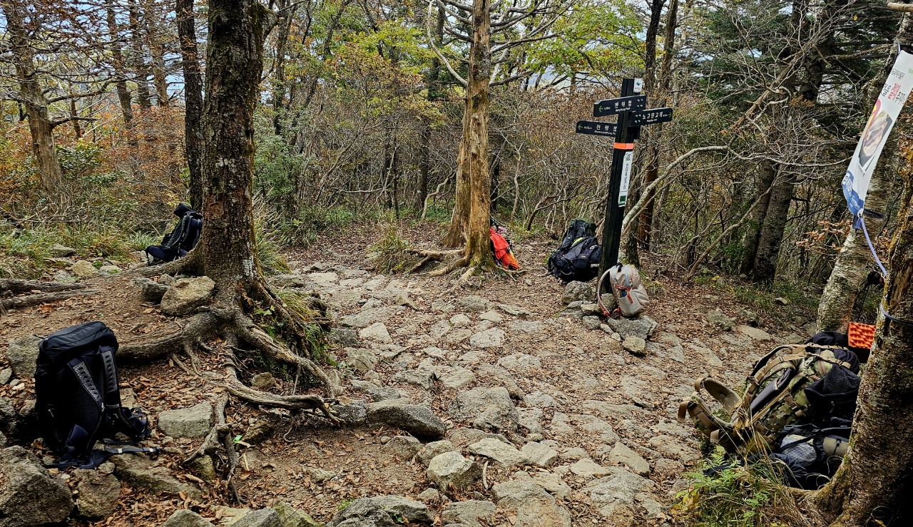 노루목에서 무거운 배낭은 벗어놓고 반야봉으로 향합니다.반야봉은 주능선에서 1키로 떨어져 있어 힘든 종주자들에겐 일종의 선택 사항.