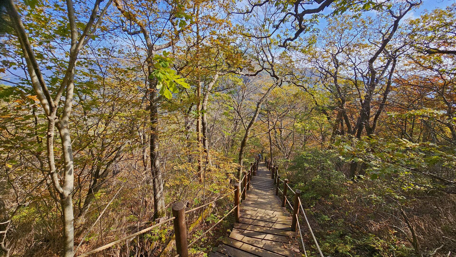 길이 완만하고 정비도 잘되어있거든요.탄력 있는 저게 나무 데크길도 길고.