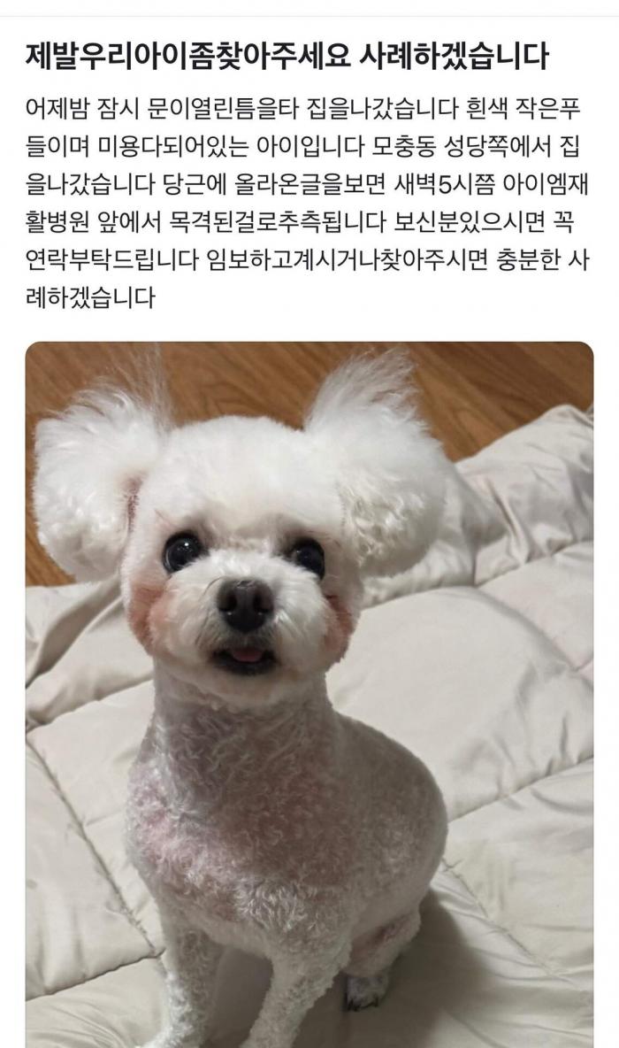 | 23212 | 모충동 길잃은 푸들 찾고 있어요 1 | tonic | 2025.11.19 | 136 | 0 |