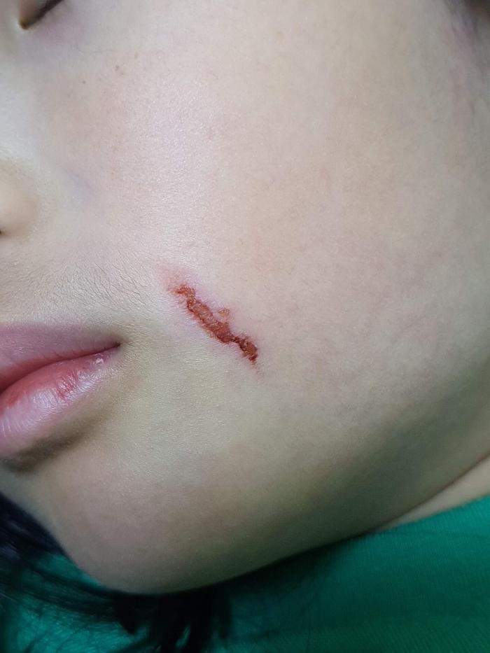 자유게시판애 올린 글 관련 딸아이 얼굴 화상 사진입니다.