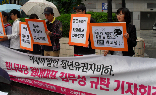 청년유권자 비하 발언, 한나라당 김무성 원내대표는 이에 대해 즉각 사죄하라!