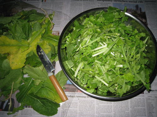 시장에서 사 놓았던 열무 한 단을 올리고,