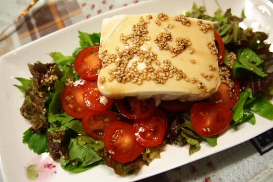 연두부 샐러드..간장 드레싱 쫙 뿌려줘요~