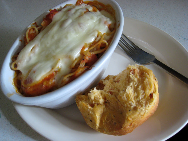 어제 먹고 남은 스파게티에 루나 스트링치즈 한개 훔쳐서 넣고 굽고 빵이랑 점심으로 먹었습니다.