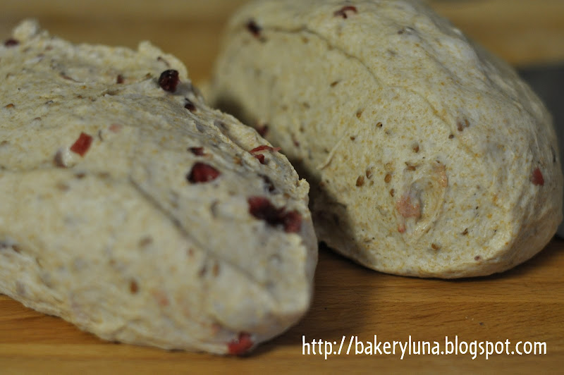 저의 사랑하는 아침식사용 크랜베리빵입니다. 기본은 킹아서의 바게트 레서피에 통밀 반 섞고, 달달한게 땡겨서 말린크랜베리 넣고, 아마씨도 넣어서 구웠습니다. 성형은 그냥 8등분..하루에 저리 큰 거 한덩이씩 먹어 치웁니다. 우하하