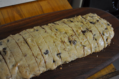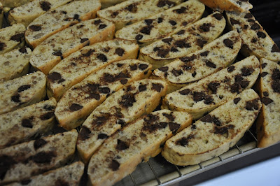 계란 흰자를 바르면 옆면이 윤이 나겠네요. 평소같으면 크랜베리나 건포도 넣은걸 가장 좋아하는데 오늘 초코가 떙기는 날인지라 초코칩 베스코티가 엄청 맛나보입니다.