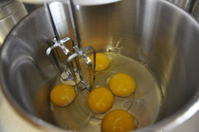 일단 계란에 설탕을 넣고 잘 풀어주고, 밀가루를 두번에 걸쳐 나누어서 섞어줍니다.