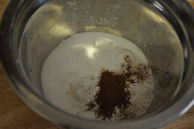 설탕 1컵 + 베이킹파우더 1 1/2 tsp+ 소금 1tsp + 시나몬가루 1tsp (생략가능) 를 함께 섞어 줘요.
