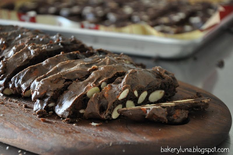 사진은 중복.이 비스코티 레서피 아주 많은데 이건 저온에서 오래 굽는다는 게 달라요. 왠지 그래서 초코렛 맛이 더 살아나는 거 같아요. 그리고 아몬드랑 초코칩을 아주 들이 부어요 ㅎㅎㅎㅎㅎ. 찐한 비스코티 맛있게 해 드세요~