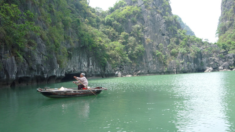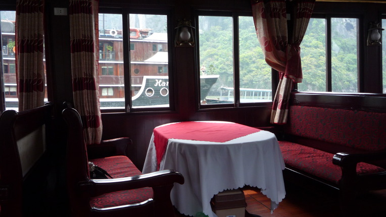 이 배에서 아름다운 풍경 감상하고 ~ 동굴가고~ 밥도먹고~ 노래도 하고~ 8시간 동안 있었어요 @@