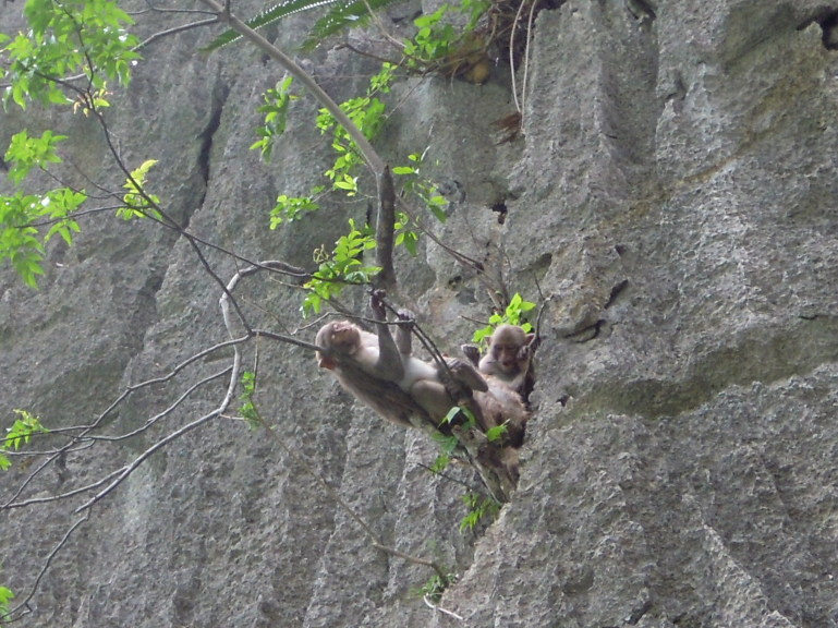바위에 원숭이들이 많이 있어요~~