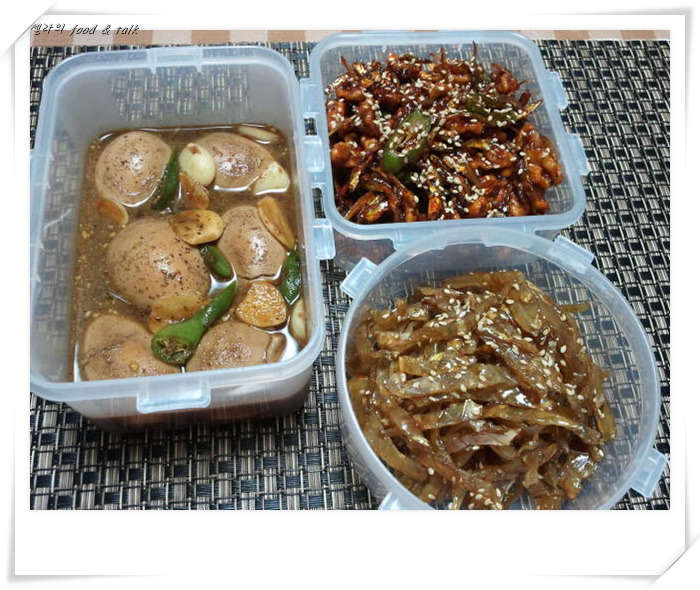 멸치조림과 쥐포조림, 계란장조림.... 3가지와