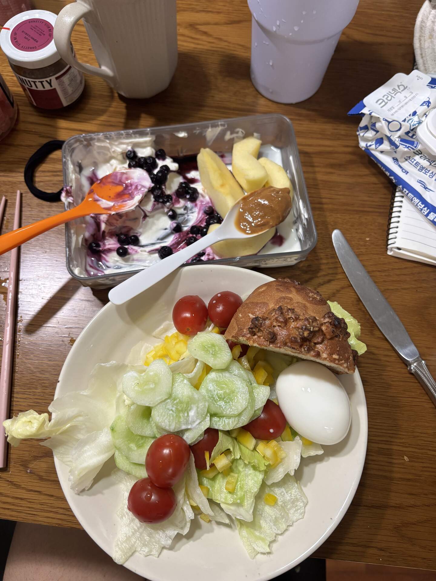 아침 식단입니다. 탄단지 맞춰서 진짜 넉넉히 먹어요.