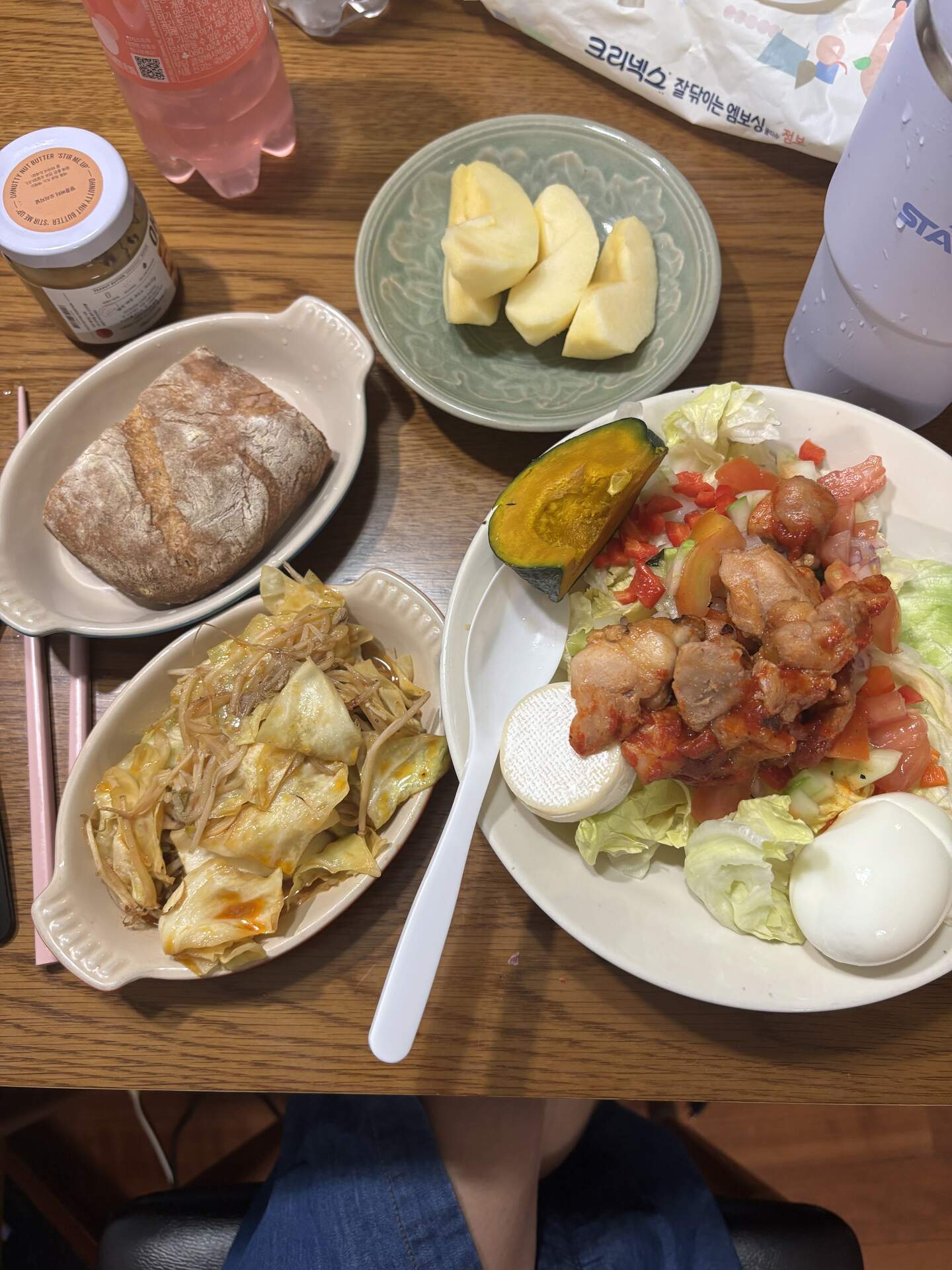 저녁 식단이예요. 점심을 대부분 외식먹기 때문에 저탄수 야채와 단백질 위주로 먹어요. 이렇게 식단해서 2년동안 20키로 뺐는데 담낭의 돌이 그사이에 너무 커져서 여름에 제거수술도 했어요. 회복 잘 하고 그동안 담석 때문에 심했던 명치통증, 등통증, 소화불량도 다 사라져서 너무 좋아요. 하지만 전신마취여서 그런지 체력이 많이 떨어져서 요즘은 다이어트 한다기 보다는 유지 및 영양보충에 신경쓰고 있어요. 나이 들어도 폐경이여도 배부르게 건강하게 살 뺄 수 있어요. 먹는 즐거움이 크니 너무 굶지 마세요.