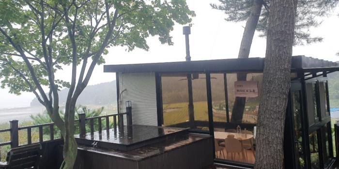 여기는 바깥 사돈이 안 사돈을 위해 지은 별채 카페랍니다. 바깥 사돈은 퇴근 후 취미로 성악을 하시는데 성악 동아리 친구분들과 휴일이면 모여 텃밭 농사 짓고 노래 부르며 별장에서 쉬기도 한다는데 아빠 친구들은 카페 출입 금지래요.