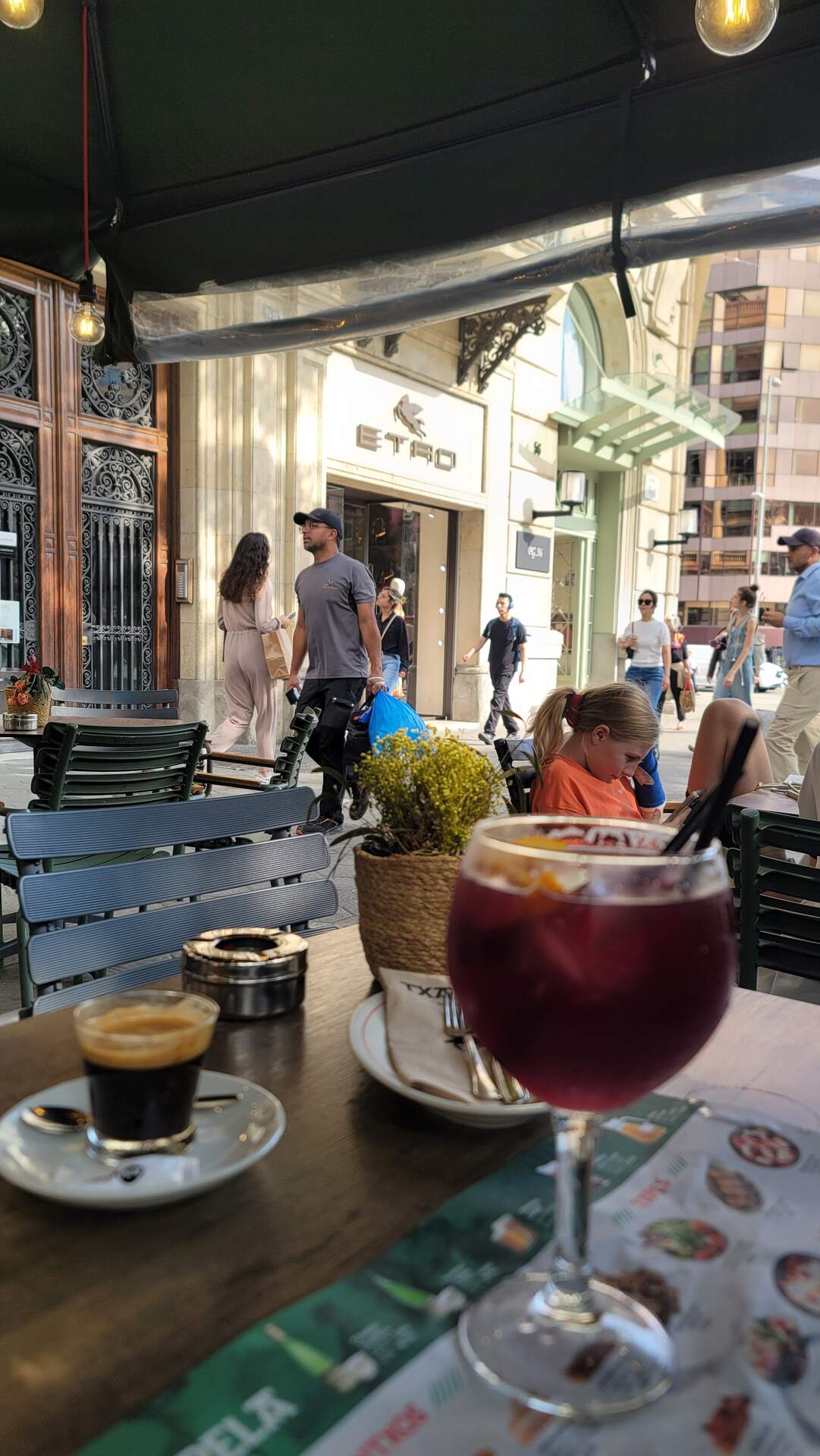 까사바뜨요 후다닥 보고 드물게 시간이 남아 근처 까페에서 현지인 모드로 커피와 샹그리아 한 잔.