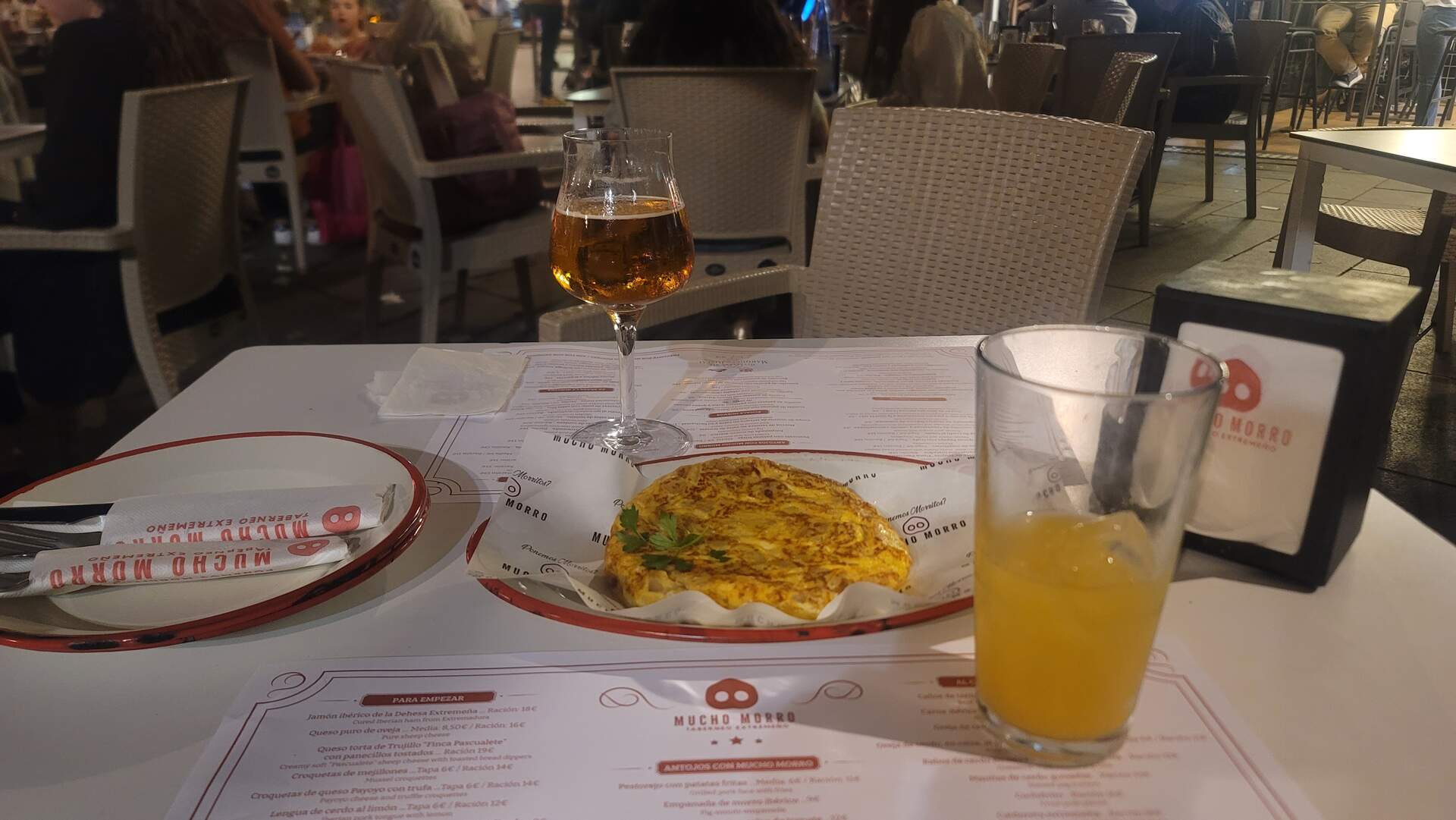 호텔 투숙했는데 불금이라 호텔 앞 광장에서 공연을 해서 나와 한 잔 했어요. 안주는 감자 오믈렛, 실패없는 선택.