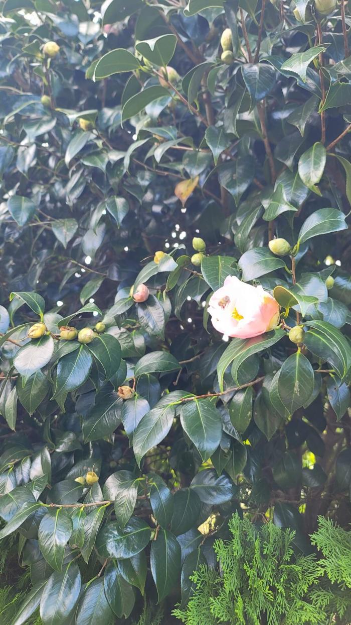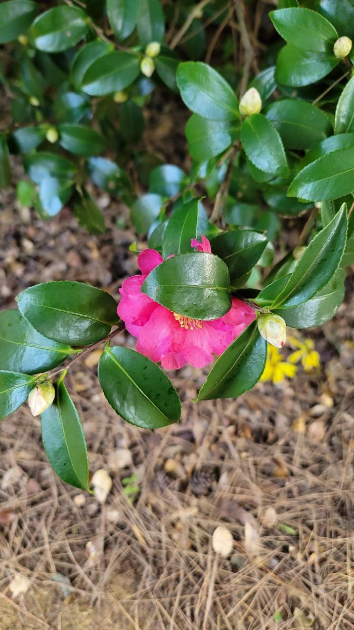 겨울에 활짝 필 준비하는 동백. 섭섭할까봐 한 송이 피어주었네요:)