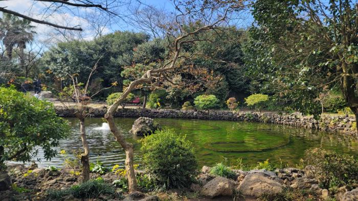 공항에서 버스 타고 간 한라수목원입니다. 기대하지 않았던 동백이 한 송이 피어서 반가웠어요.