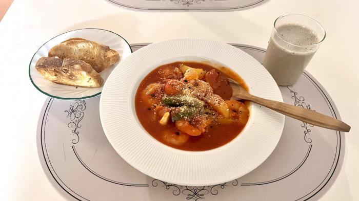 뜨거운 토마토 스튜 국물은 정말 최고에요.