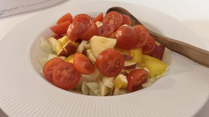 양배추,사과, 방울토마토.노란파프리카 콥샐러드,