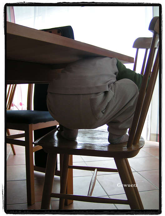음..엄마 몰래 식탁 위로 올라가려면....저 의자 위로 일단...