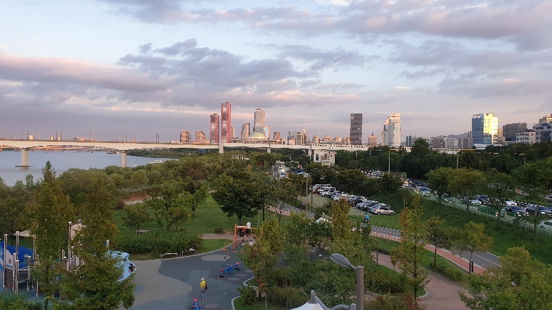 앉아 쉬며 노랑진,여의도 쪽 전망이 좋고.