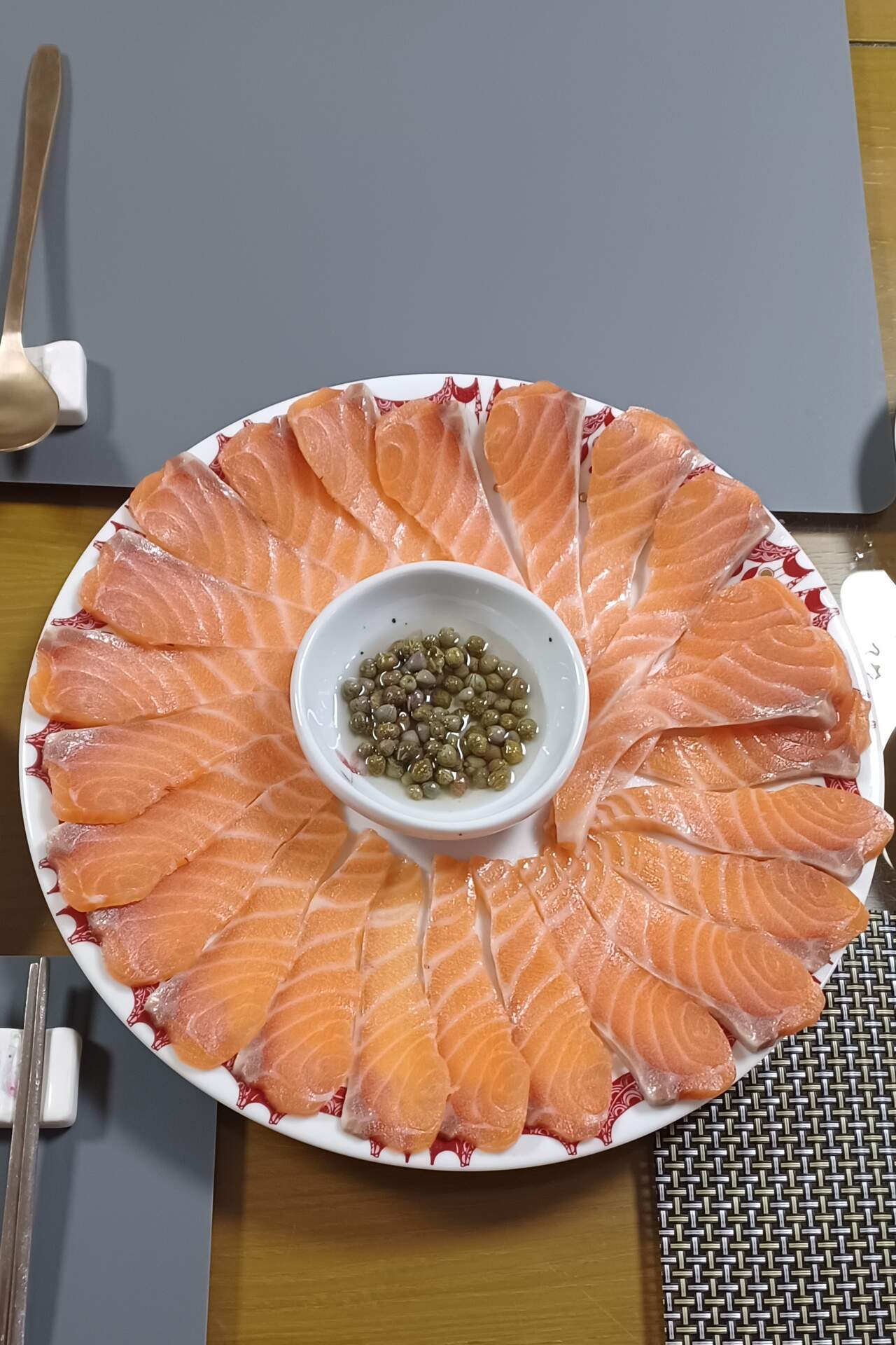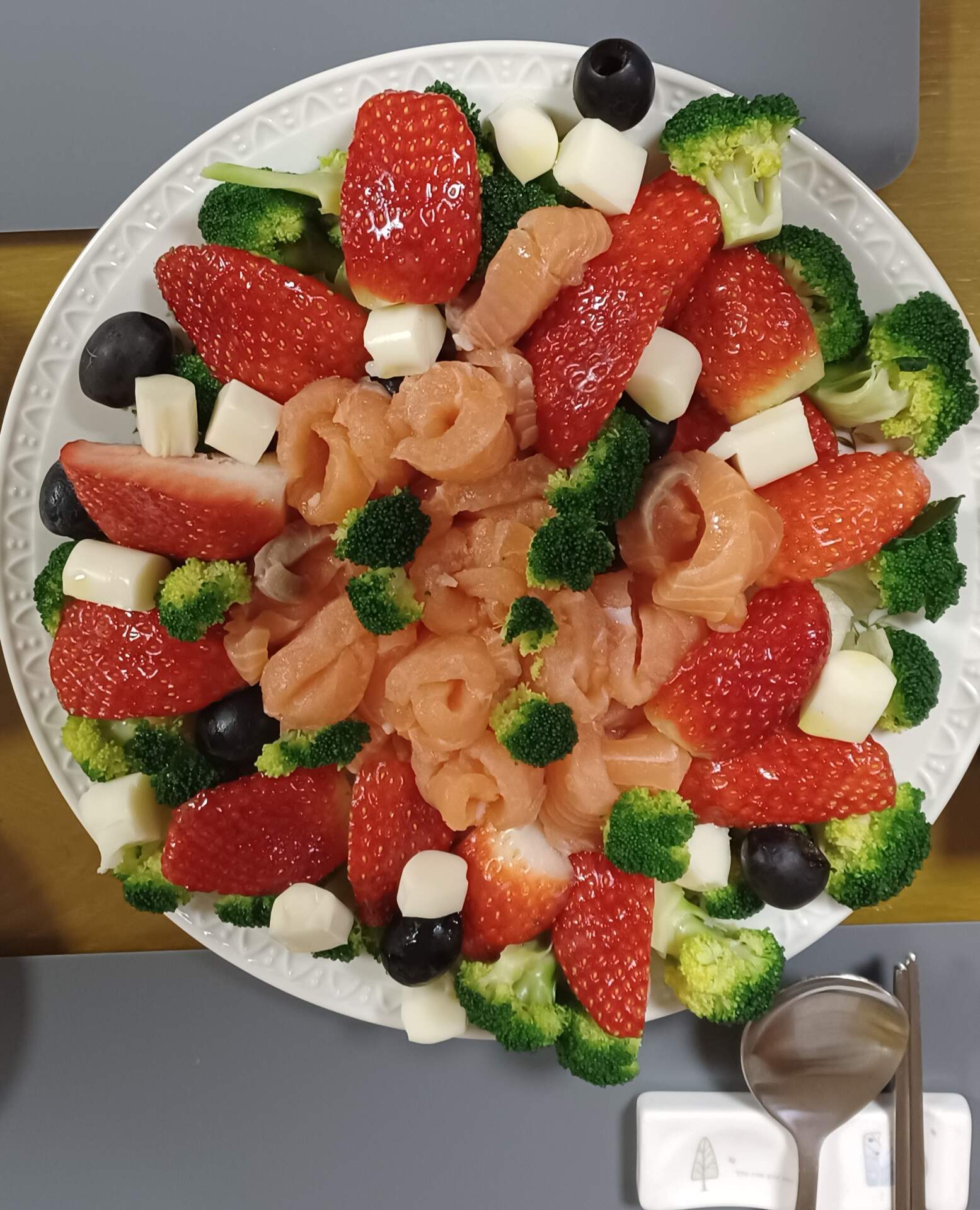 연어 샐러드 만들고 근접촬영. 태가 곱구나