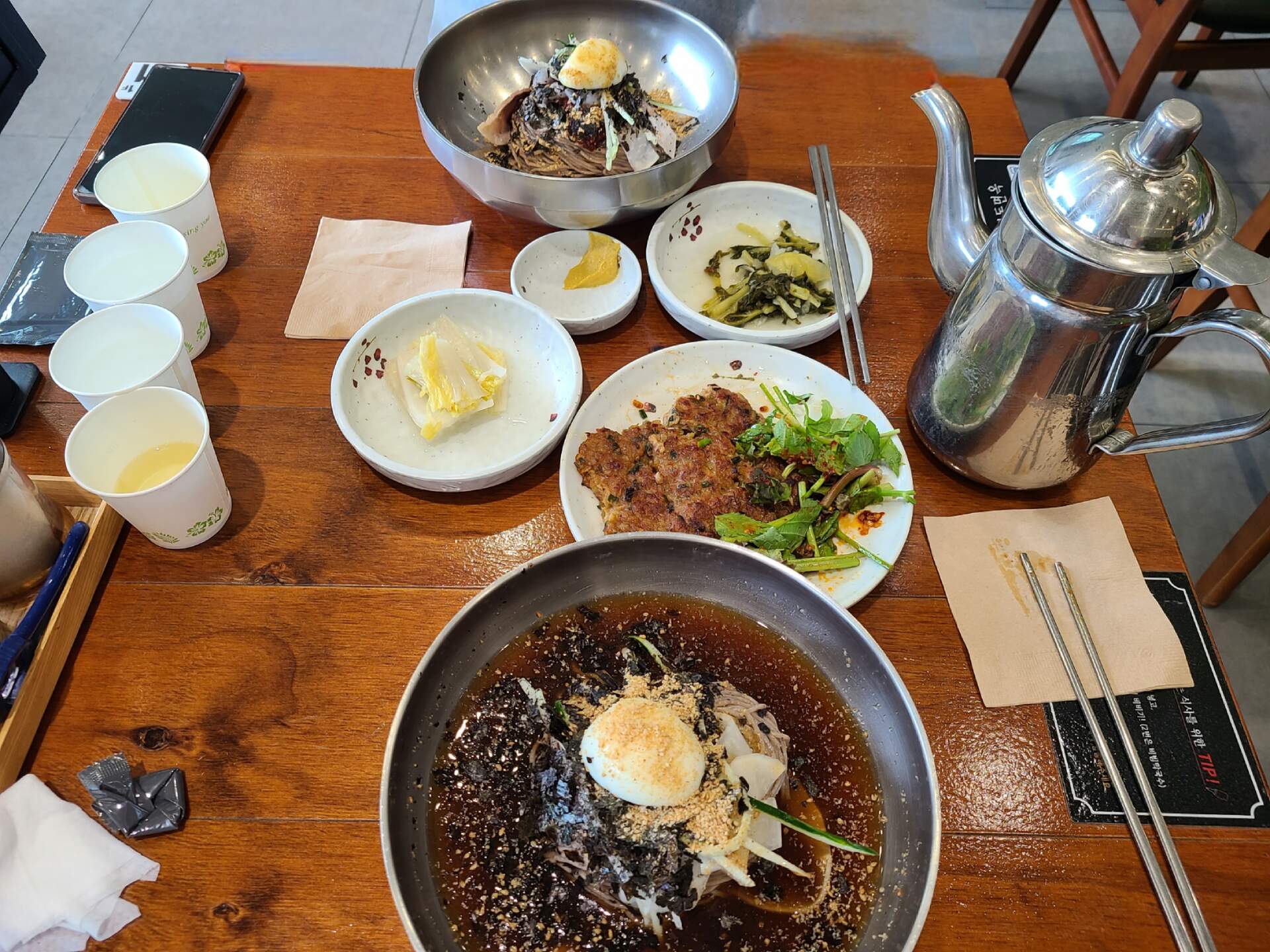 경주에서는 요즘 맛집으로 핫하다는 낙지비빔칼국수 같이 먹은 감자전도 맛있었어요.