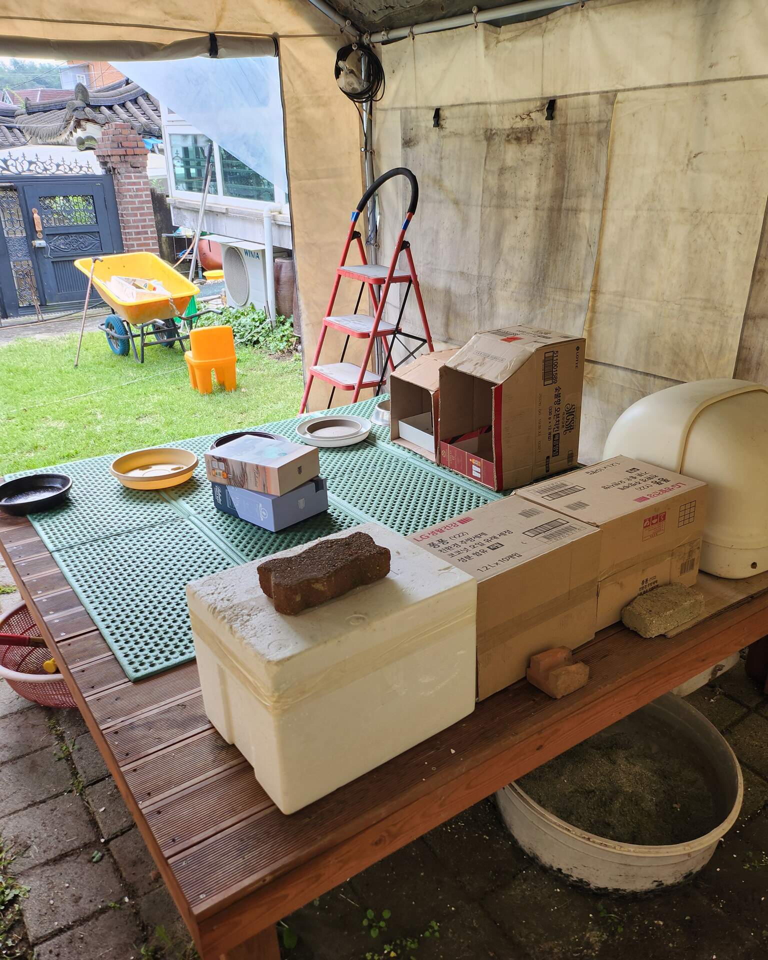 천막은 여름엔 저희 인간들?이 사용하고 ㅎㅎ