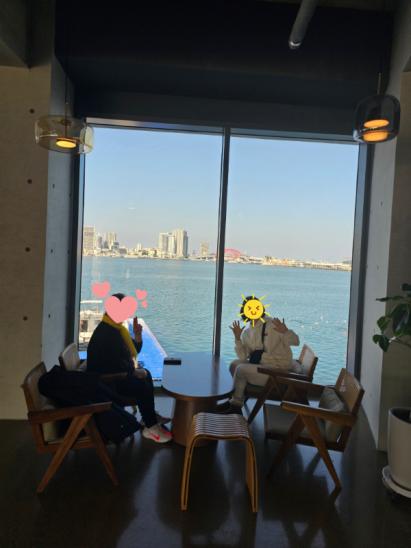 청초호가 보이는 카페에서 엄마랑 언니랑
