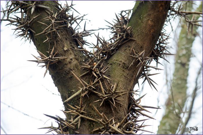 조각자나무의 가시는 처음에는 부드럽고 힘이 없습니다.