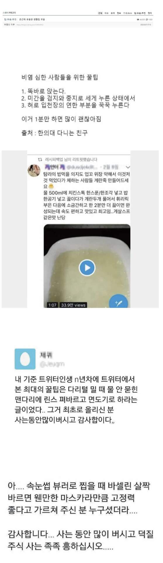 | 15794 | 삶에서 유용하게 쓰이는 꿀팁 모음 | 김현주 | 2026.03.18 | 23 | 0 |