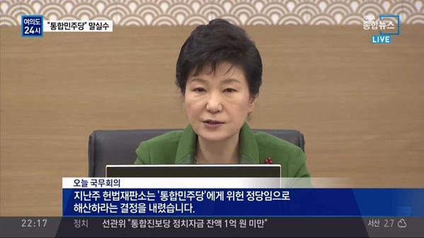 "지난주 헌법재판소는 '통합민주당'에게 위헌 정당임으로 해산하라는 결정을 내렸습니다."