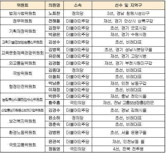 더불어민주당 15명, 정의당 3명, 국당 2명, 바당 0명, 자당 0명