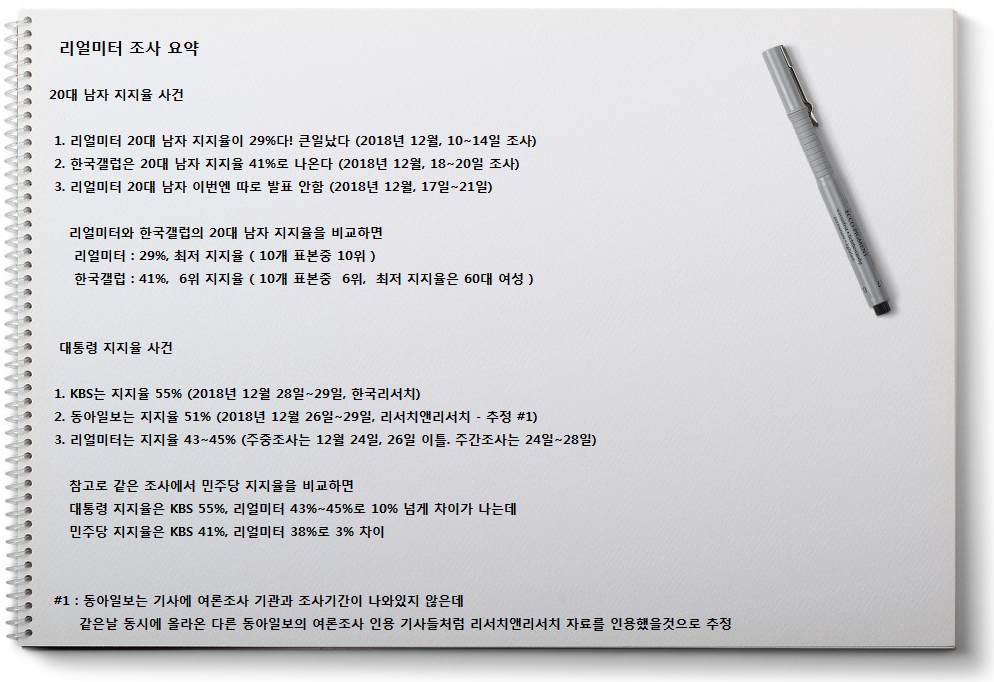 1) 문제는 리얼미터와 같은 저품질 통계가 정치권에 잘못된 시그널까지 준다는 것임.