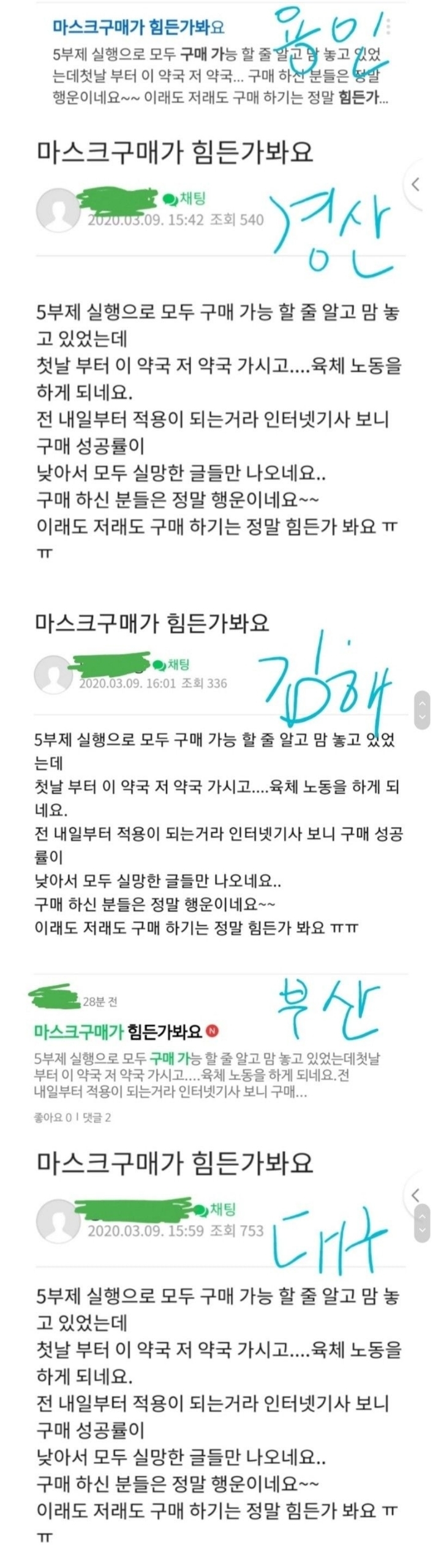 어는 동네가 공적 마스크 5부제 사는게 원할한지