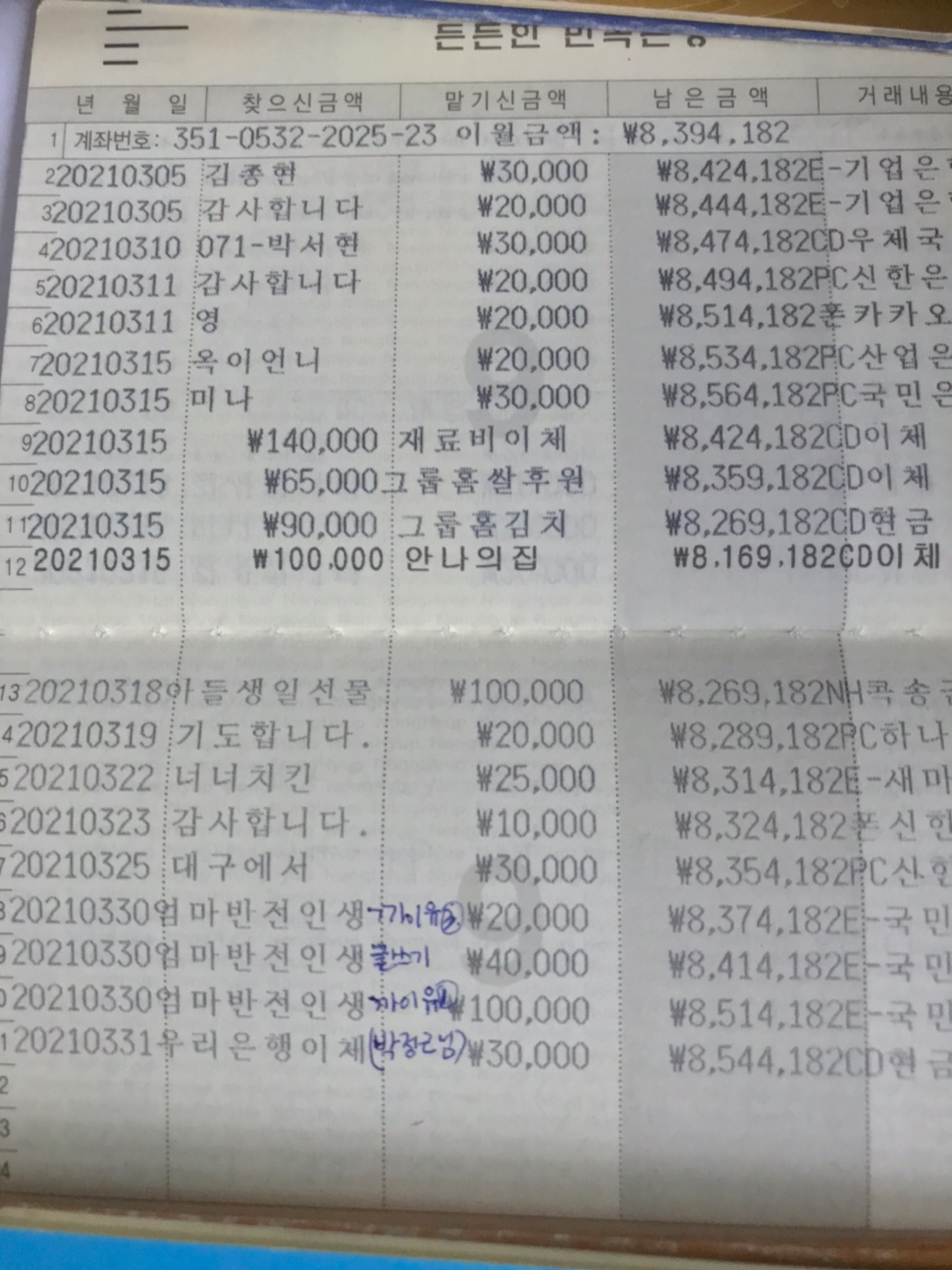 2021-10-25 (우리은행)박정근 님 *30,000원 -11월 정리예정