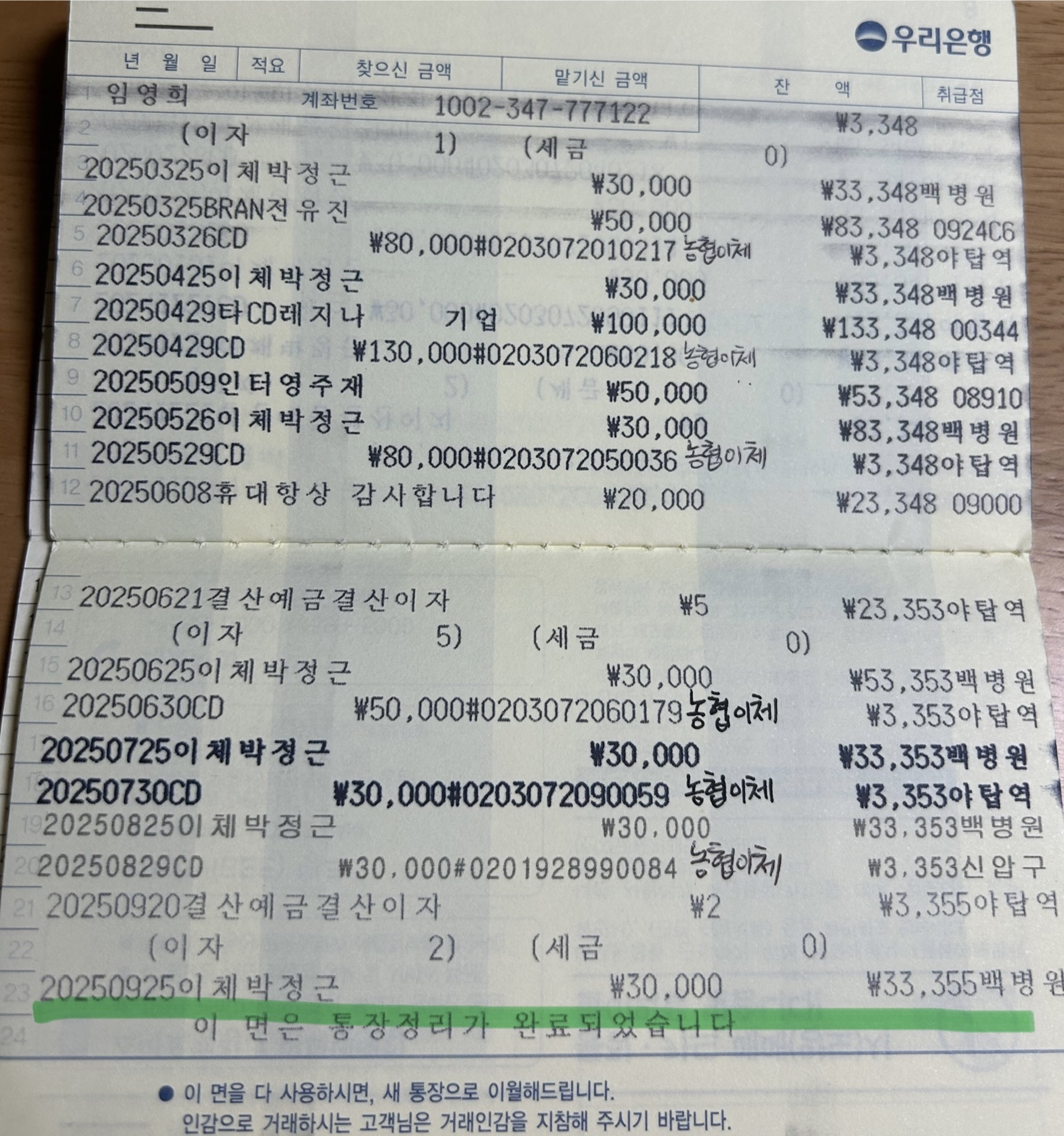 부계좌는 <우리은행 1002-347-777122 임영희>