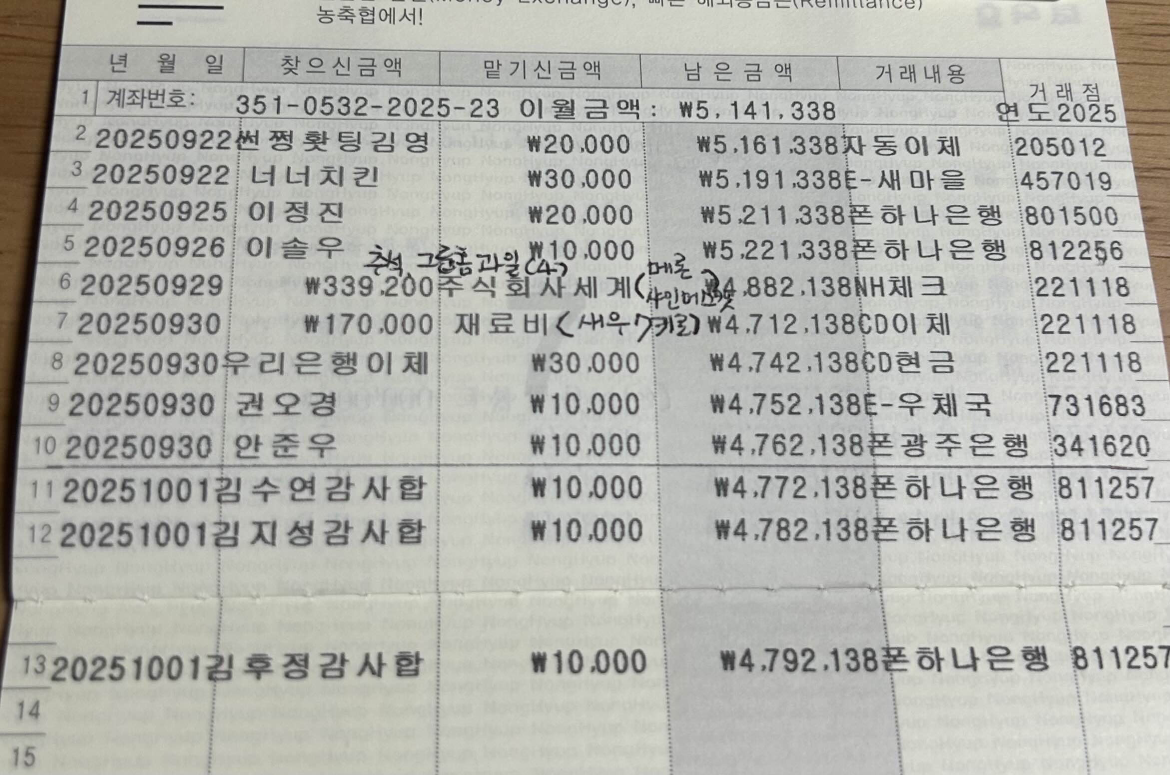 2025-09-29 9월 재료비(새우7kg) - 170,000원